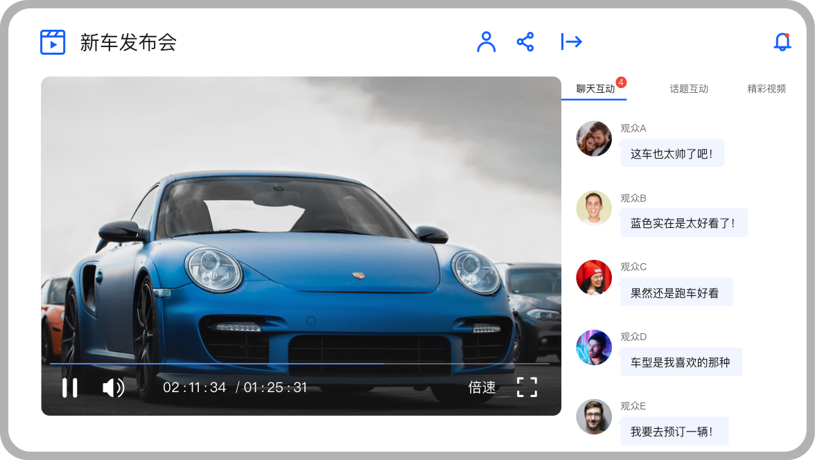 一套产品满足车企在营销活动、私域转化、企业培训、协同办公等全场景应用需求,实现直播业务统一搭建