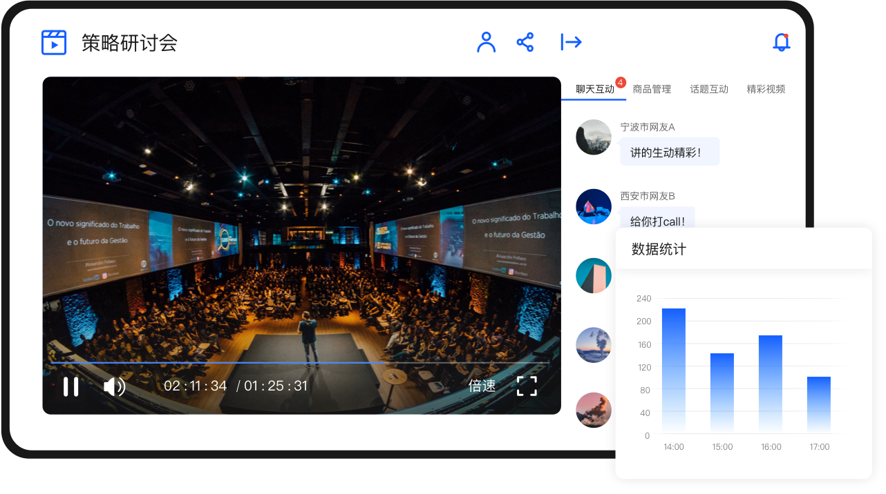 企业视频直播平台,即开即用,400+场景化工具,可与其他系统灵活对接,满足多级权限管理,支持企业的私有化需求