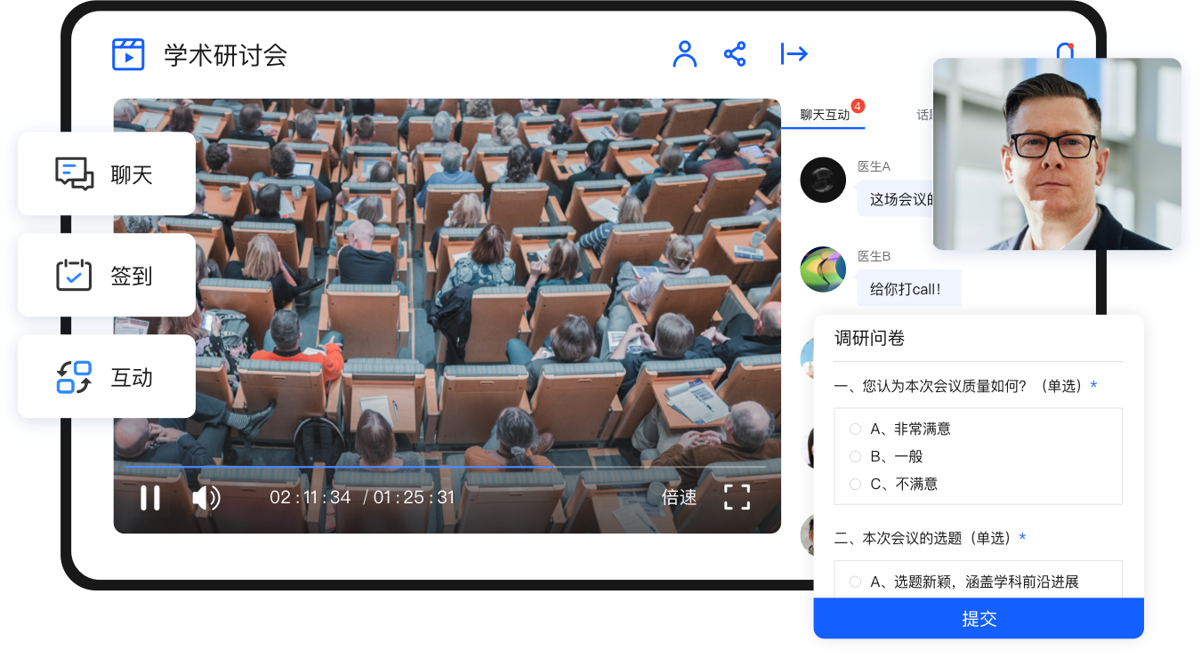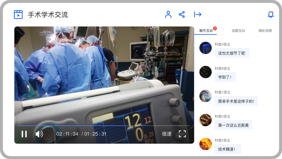 一套产品满足医疗企业学术交流、医疗示教、营销、远程问诊等全场景应用需求,实现直播业务统一搭建