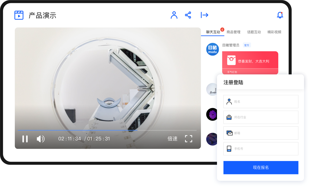 医疗行业涉及患者隐私,直播内容的合规性、私密性要求高,目睹通过直播的形式,让药企、药械机构能与目标客户(医学专家、医生)随时随地在线参会交流,支持身份验证,不仅保障了合规性和客户隐私,营销也更加精准