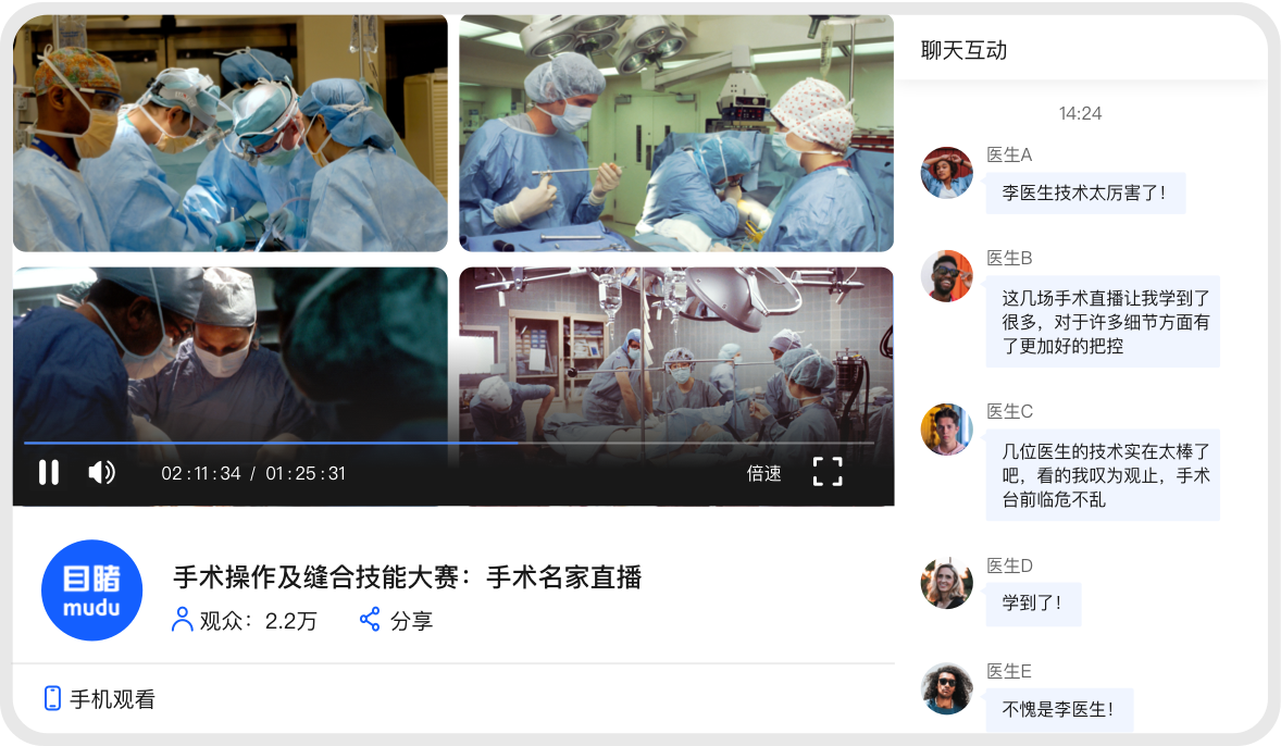 【手术直播/转播、远程科室会、医疗会诊等场景】